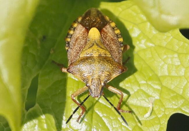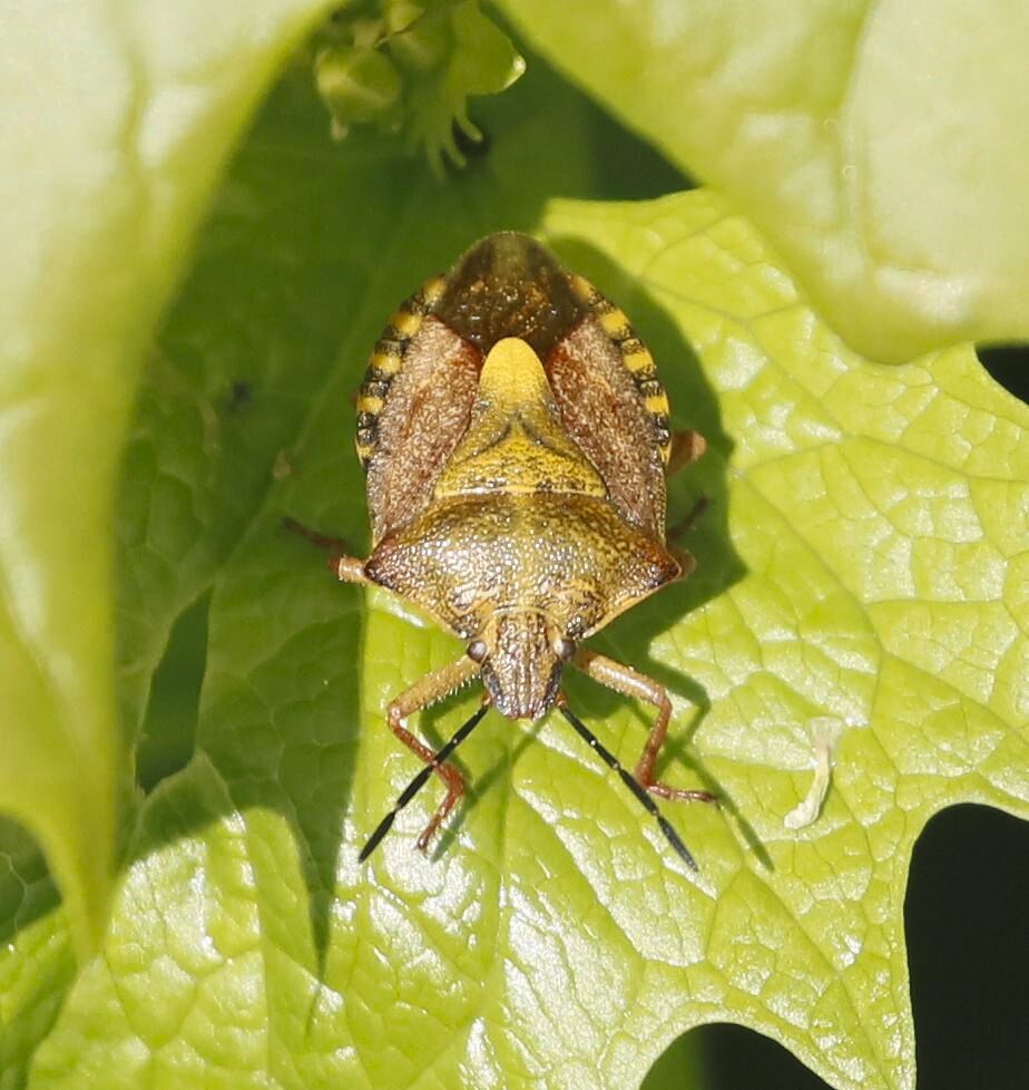 Die Fleckige Brutwanze lebt auf Birken und Erlen und ernährt sich saugend von Pflanzensäften der Blätter.