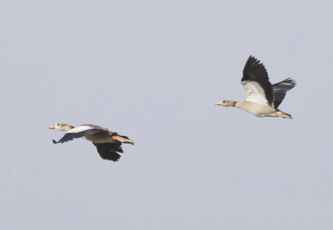 Charakteristisch für die Nilgans sind ihre verhältnismäßig hohen Beine sowie der dunkle Augenfleck.